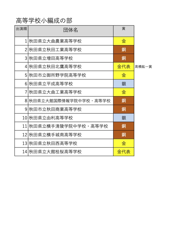 4日目 8月 2日(土) 高等学校小編成・高等学校